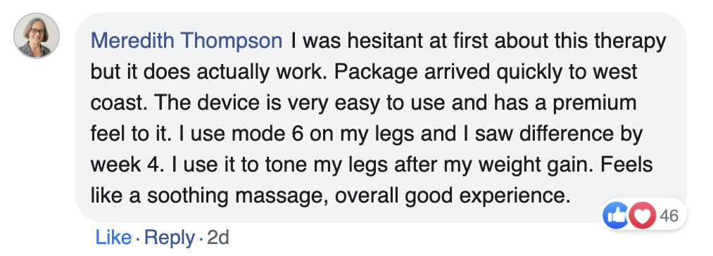 Should have bought Sonicfit™ earlier; it's exactly what I needed. It has significantly improved my skin's firmness and reduced stubborn fat. Honestly, I feel more confident and comfortable. I've only used it for a few days, and I've already seen better results than I have in years!